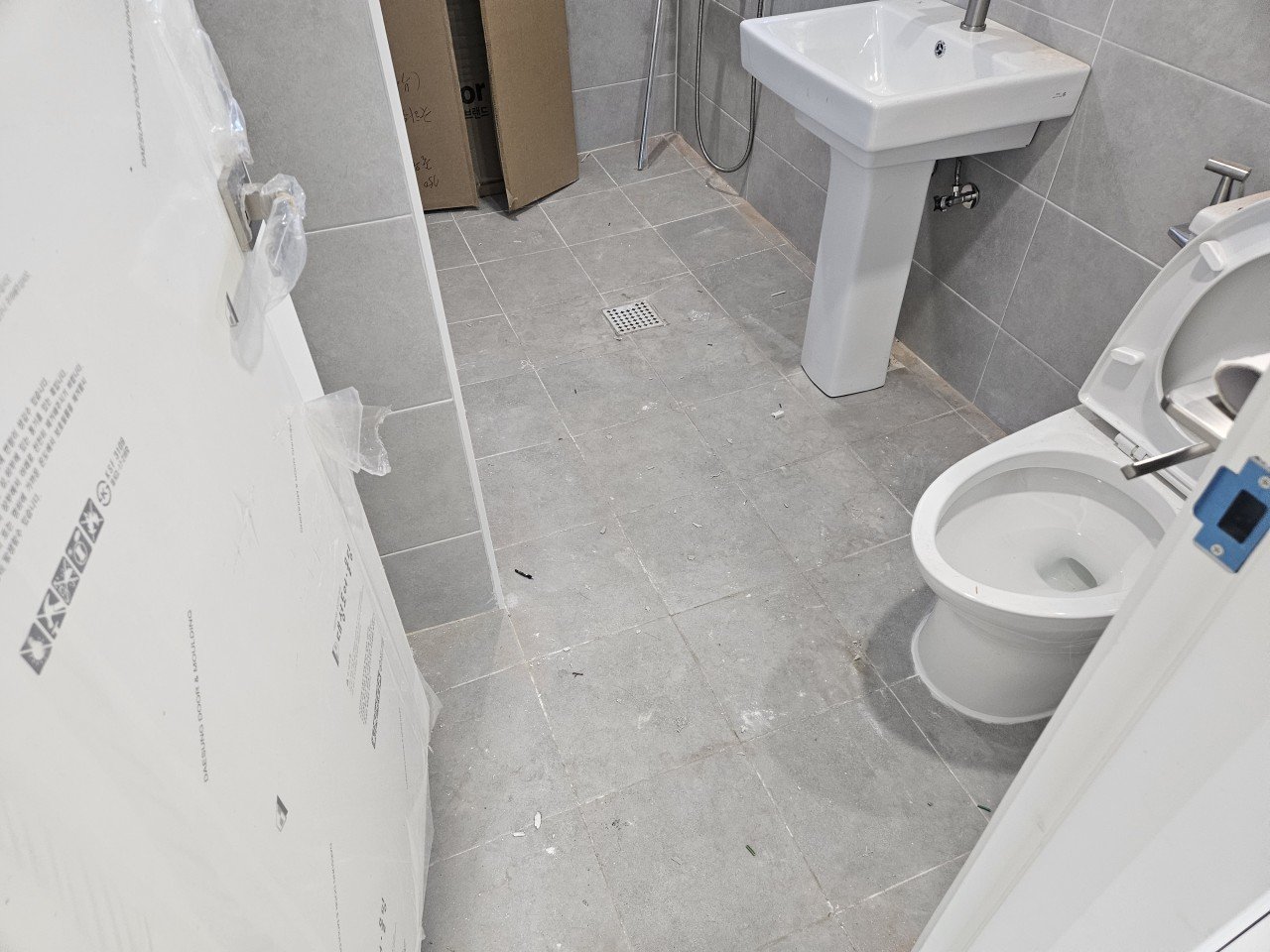 - 시공 후 남은 시멘트 막과 줄눈 오염을 전용 약제로 녹여낸 뒤, 충분한 중화·헹굼으로 본래 색감을 회복했습니다. 바닥 미끄럼과 물때까지 동시에 정리했습니다.