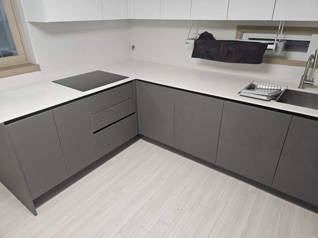 - 신발장, 싱크대, 샷시의 필름을 제거하고 남은 접착 잔사는 전용 제거제로 번들거림 없이 정리해 마감재 본연의 질감을 살렸습니다.