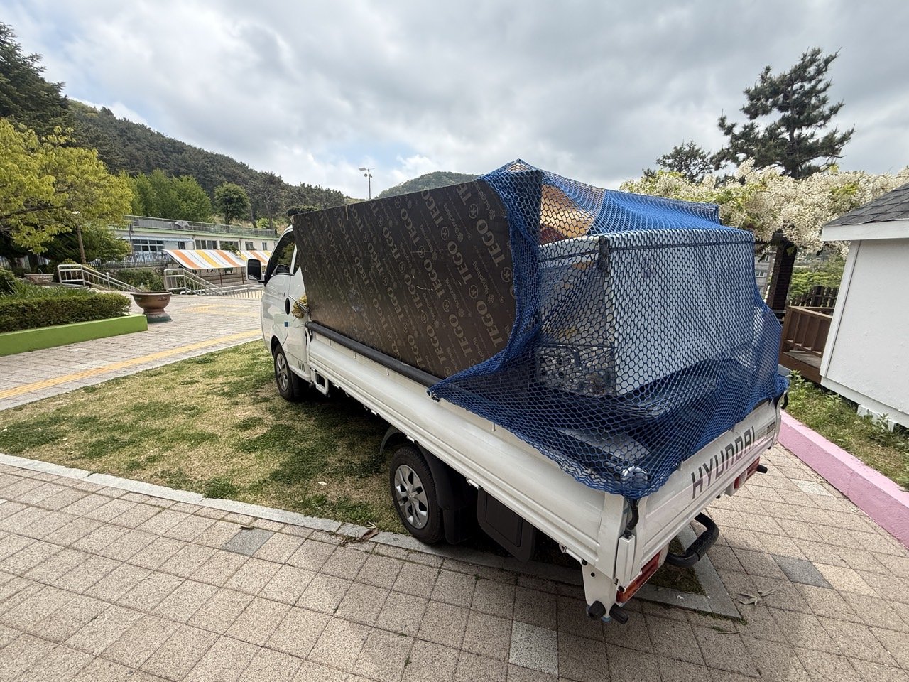 체육용품, 교실 집기류, 낡은 학습 자재 등 서로 성격이 다른 물품들이 뒤섞여 있었고, 학교가 위치한 골목이 좁아 차량 접근이 쉽지 않았습니다. 폐기물 적재 지점과 트럭 사이 거리가 길어 수작업 운반이 여러 차례 필요했지만, 동선을 세분화해 안전하게 이동했습니다.