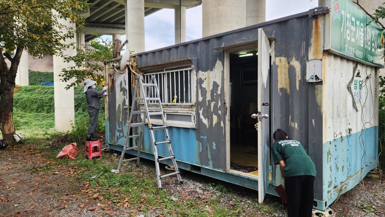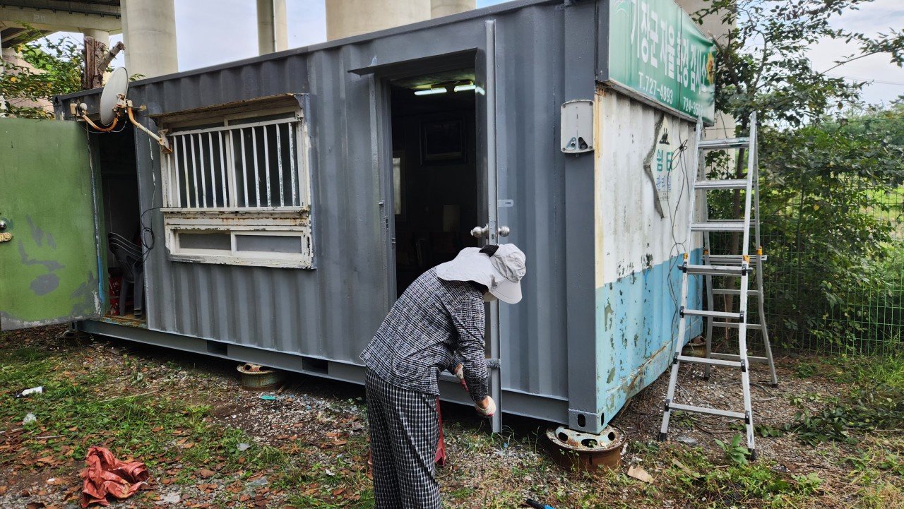 해당 컨테이너는 야외에 설치된 사무실로, 한동안 비와 습기, 주변 잡초에 그대로 노출된 상태였습니다.