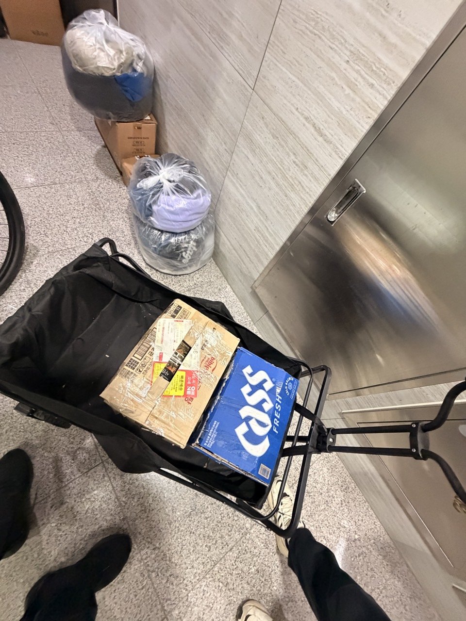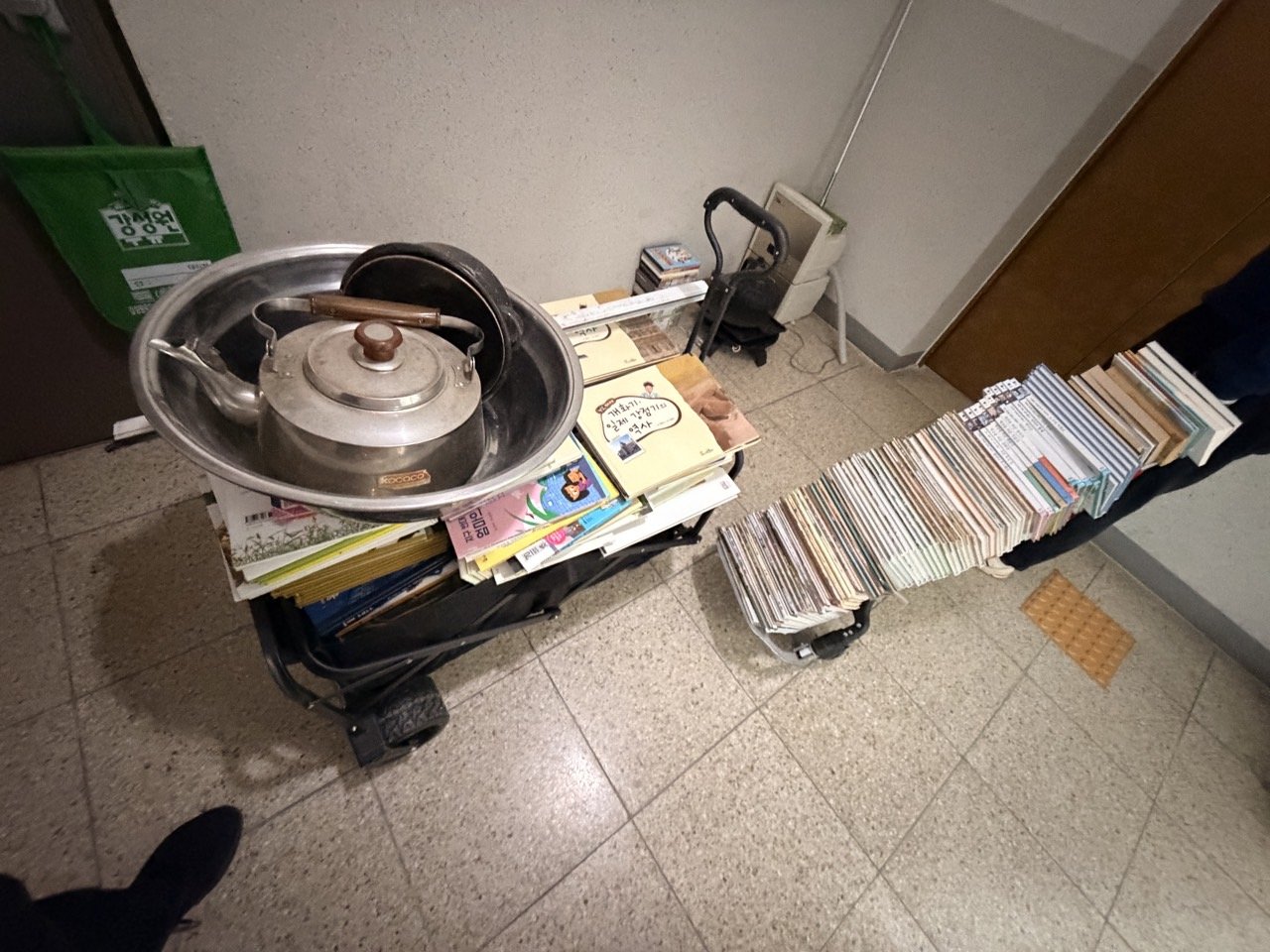 그래서 여러 번에 나누어 소량씩 담고, 카트에 실을 때도 균형을 맞춰 흔들리지 않도록 정리했습니다. 엘리베이터를 이용할 때는 문틀이나 내부 벽면에 책 박스가 부딪히지 않도록 속도를 줄이고 방향을 조심스럽게 조정하며 이동했습니다.