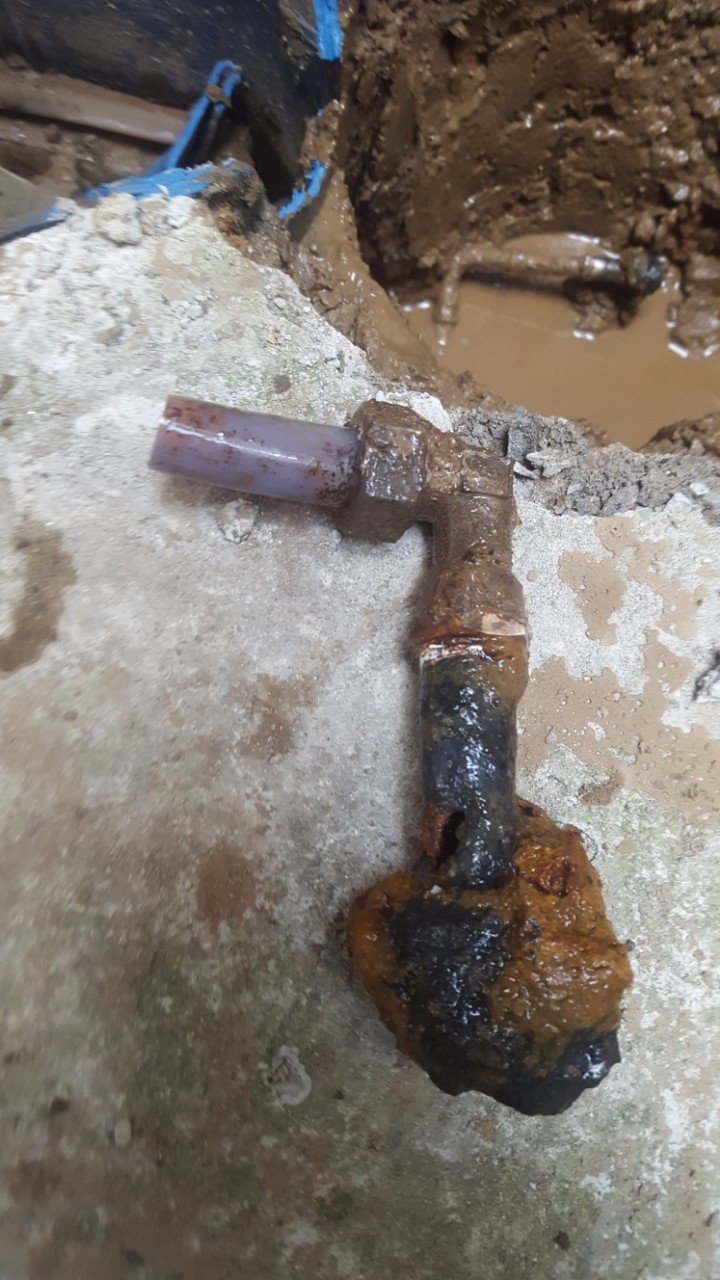 특정 지점에서 비정상적인 반응이 포착되어 바닥 시멘트를 최소 범위로 절개해 확인해 보니, 노후된 수도 배관에서 핀홀 형태의 미세 누수가 진행 중이었습니다. 겉으로 드러나지 않아 요금만 올리는 전형적인 숨은 누수였죠.
