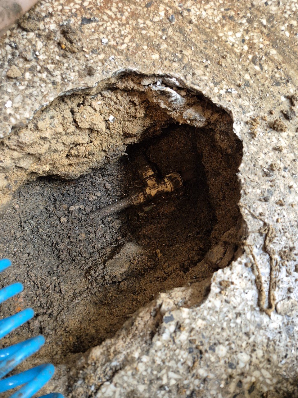 다음으로 청음탐지기를 활용해 누수음을 따라가며 범위를 좁혔습니다. 결과적으로 세면실 바닥 쪽 직수라인 연결 부위에서 미세한 균열음을 포착했고, 국소 굴착을 통해 배관을 노출시켜 근본 원인을 확인했습니다.