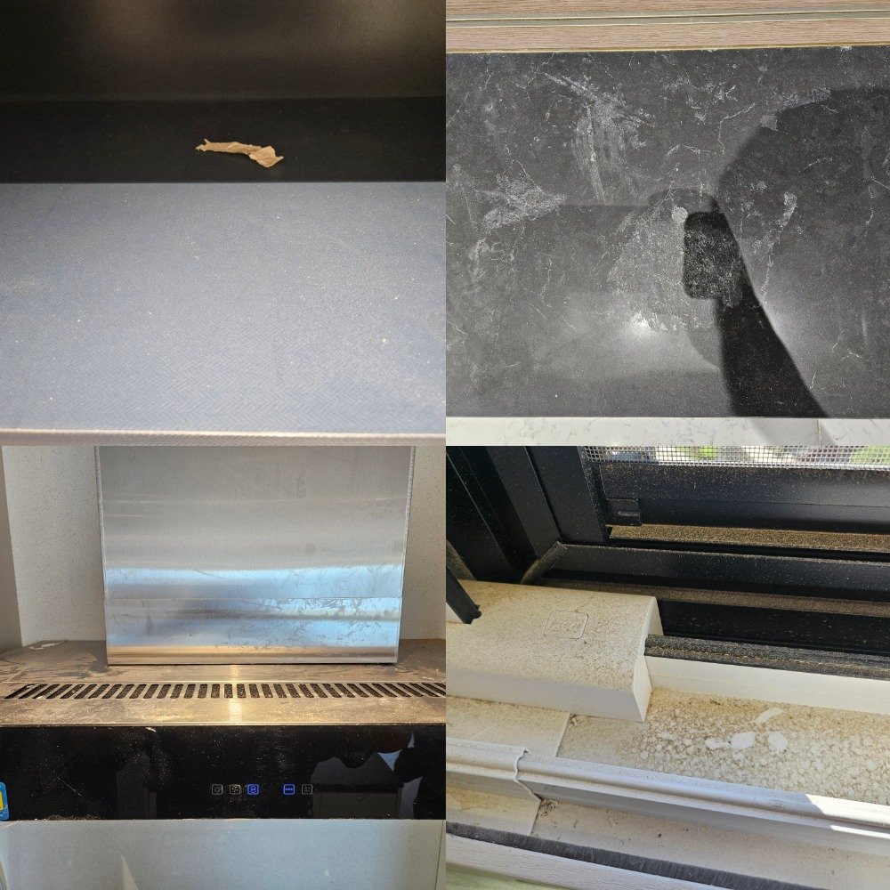 현장 도착 후 벽면과 아트월 곳곳에 도배풀 잔여물이 보였고, 바닥에는 자잘한 분진과 자재 조각이 흩어져 있었습니다. 창틀·문틀, 몰딩과 틈새에는 손에 잘 안 잡히는 미세먼지가 특히 많이 쌓여 있었죠. 이럴 땐 표면만 훑으면 다시 먼지가 올라오니, 단계별로 정밀 청소가 필요합니다.