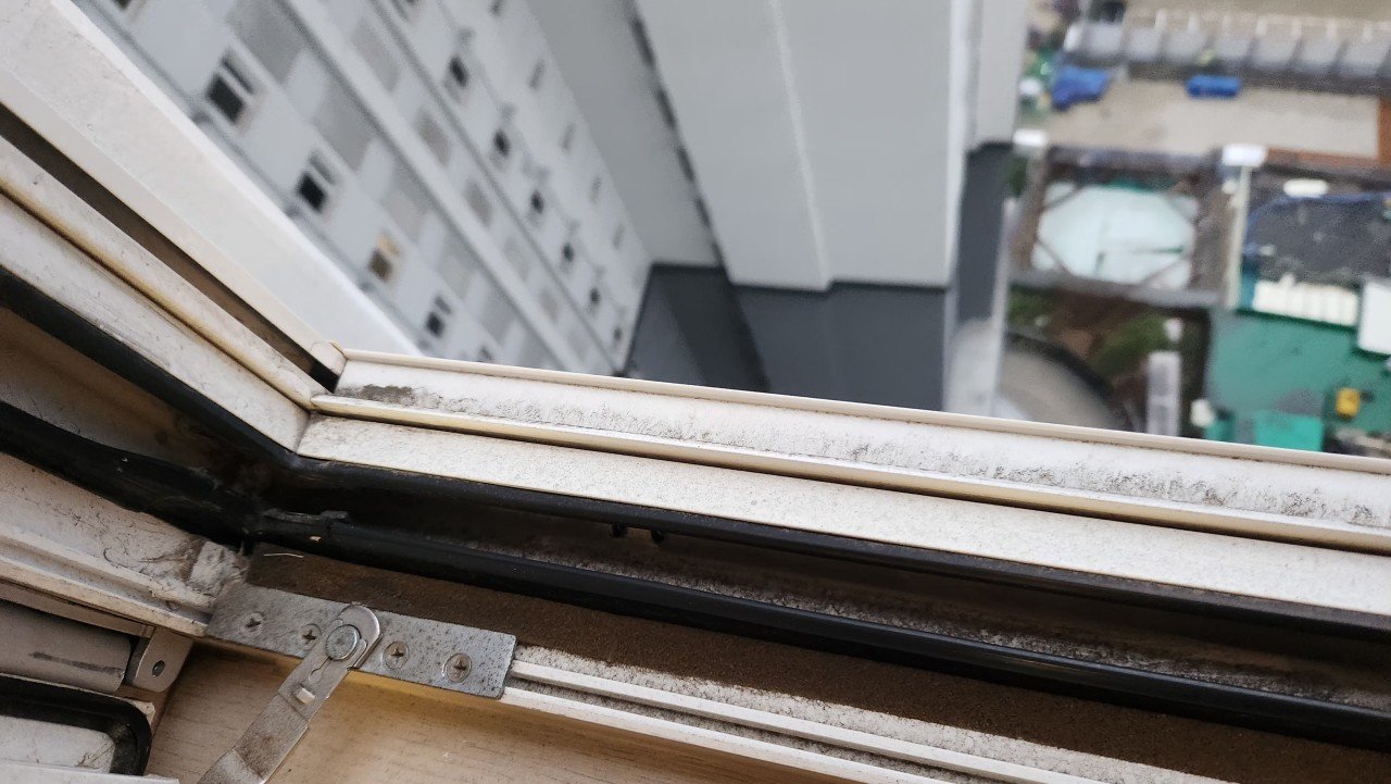눈에 가장 먼저 들어온 곳은 베란다였습니다. 모서리 라인을 따라 곰팡이가 제법 올라와 있었고, 창 주변에는 습기가 오래 머문 자국이 남아 있었습니다.