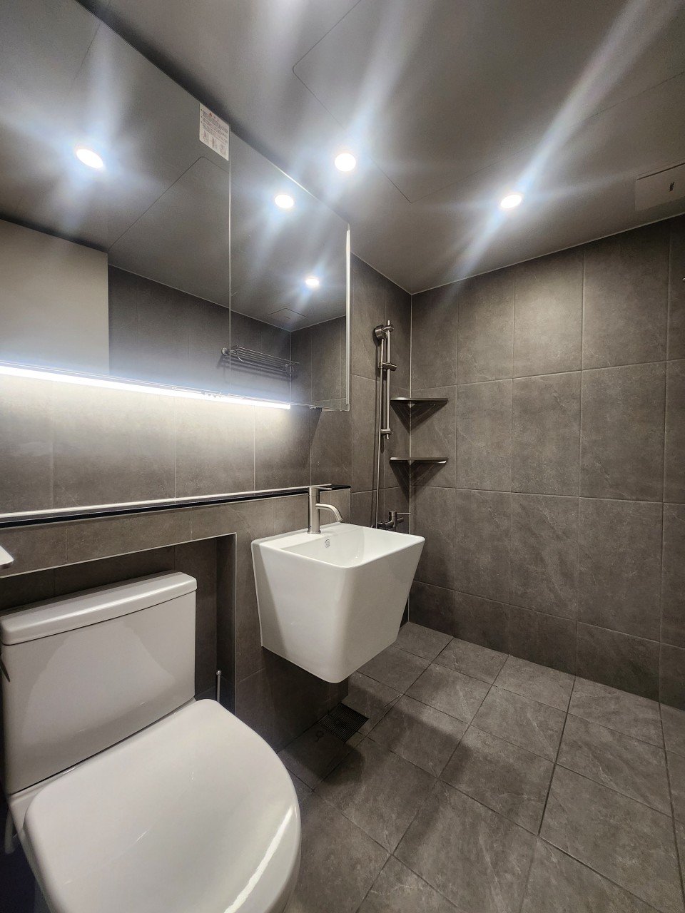 거울장과 조명까지 맞춰주니 작은 욕실이지만 완성도가 확실히 높아졌고, 실제 체감 면적도 이전보다 더 넓게 느껴지도록 연출할 수 있었습니다.