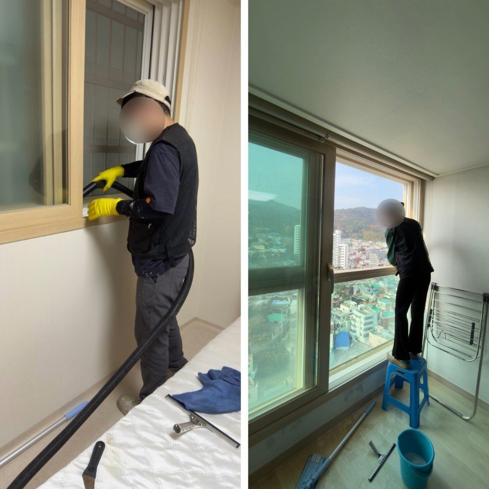 유리와 프레임 역시 손자국이나 물얼룩이 남지 않게 한 번 더 확인하며 마무리했고, 햇빛이 들어올 때 눈에 띄는 자국이 없도록 체크했습니다.