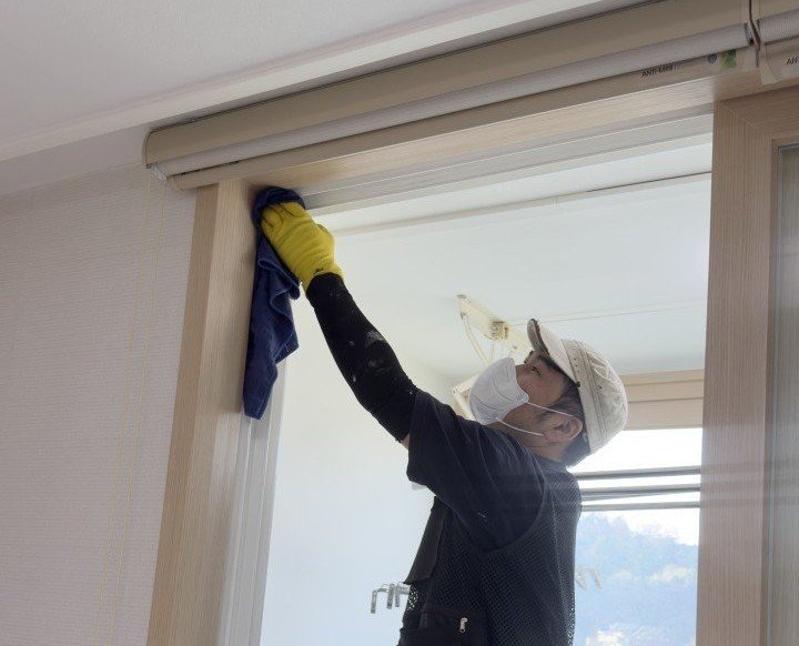 작업이 끝난 뒤에는 창틀, 주방, 욕실, 바닥까지 다시 한 번 전체적으로 확인했습니다. 청소 중에 생길 수 있는 잔먼지나 물기 흔적이 남지 않도록 최종 점검 후, 장비와 자재를 정리하면서 현장을 마무리했습니다.