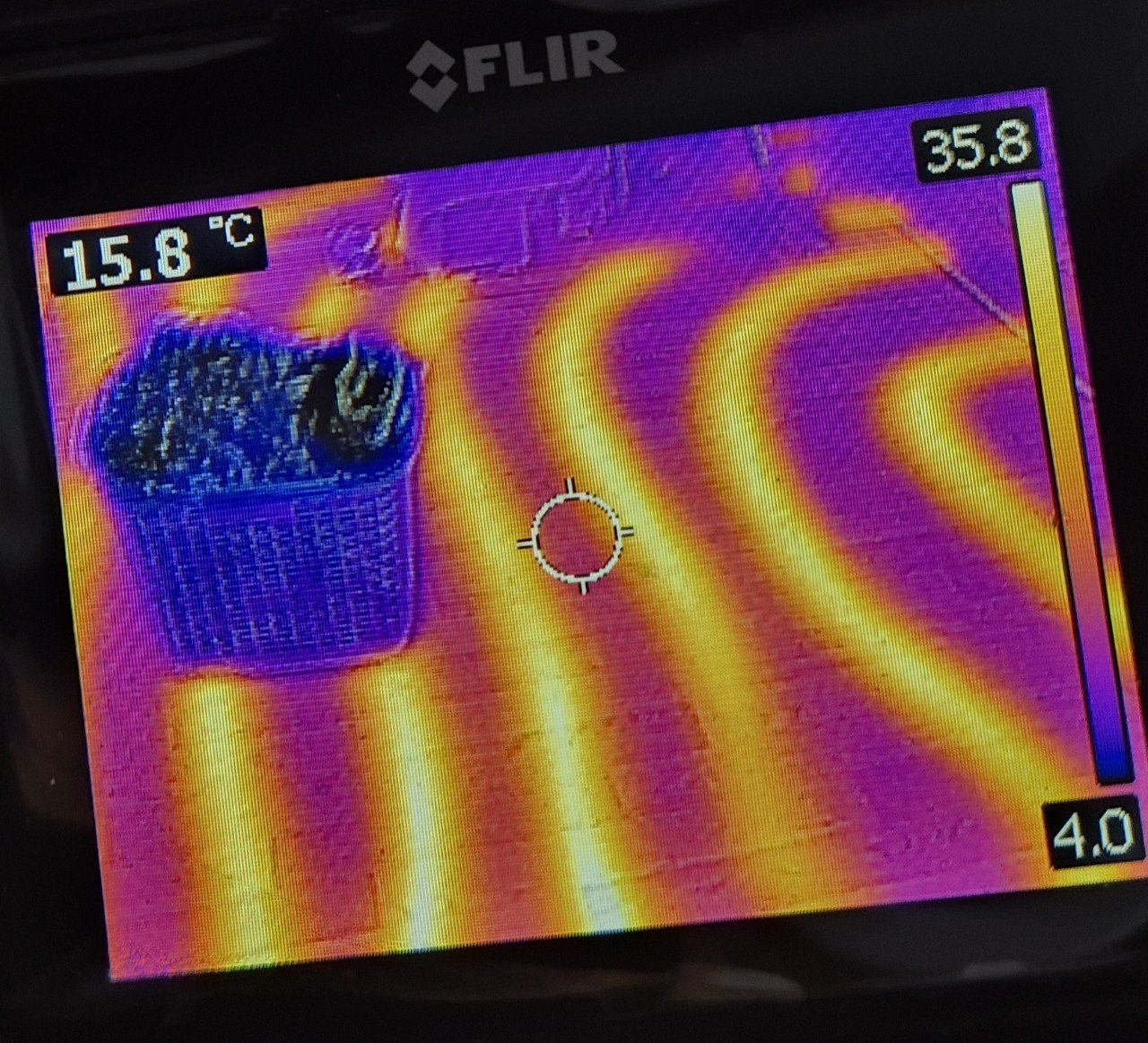 현장에 도착해서는 먼저 열화상 장비를 이용해 집 안 전체 난방 라인 온도 분포를 확인했습니다. 육안으로는 보이지 않는 바닥 속 배관의 상태를 열화상으로 확인하면, 어느 구간에서 열이 끊기거나 비정상적으로 약해지는지 한눈에 파악할 수 있습니다.