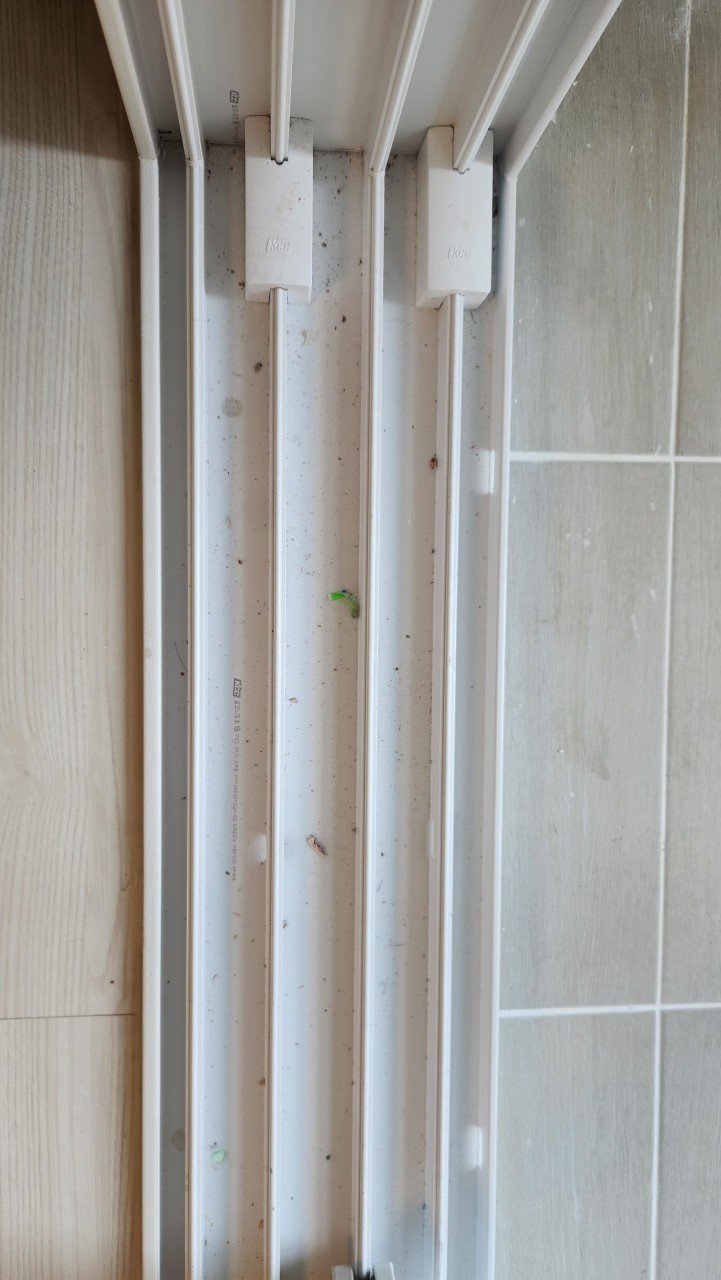 먼저 건식으로 먼지를 흡입해 큰 이물질을 정리한 뒤, 브러시를 사용해 틈새에 낀 먼지를 풀어줍니다. 그다음 전용 세정제를 이용해 레일 안쪽을 꼼꼼하게 닦아내고, 마지막에는 물기를 정리해 마감했습니다.