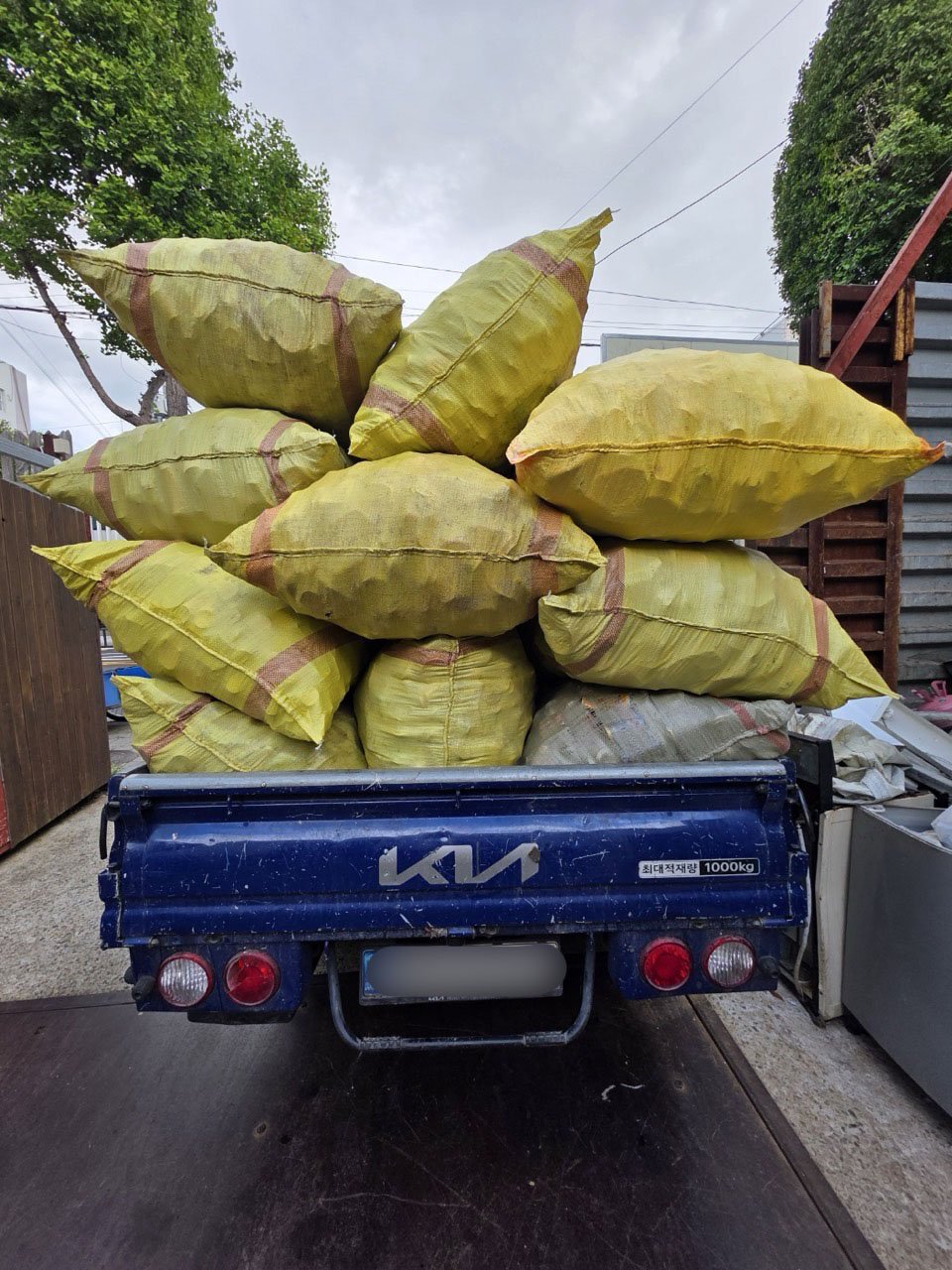 부산 남구의 한 고물상에서 알루미늄 캔 수거 요청을 주셨습니다. 현장에 도착해 보니 캔을 마대 자루에 종류별로 깔끔하게 담아 두신 상태라 1톤 트럭 한 대 분량을 빠르고 안전하게 적재할 수 있었어요.
