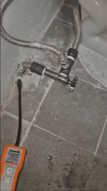 탐지용 가스를 넣은 뒤 실내와 바닥 마감재 주변을 꼼꼼하게 체크하면서, 가스 농도가 높게 감지되는 구간을 중심으로 청음장비를 사용해 소리를 다시 한 번 비교했습니다. 이 과정을 통해 실제로 누수가 일어나는 위치를 최대한 좁혀 나갈 수 있습니다.