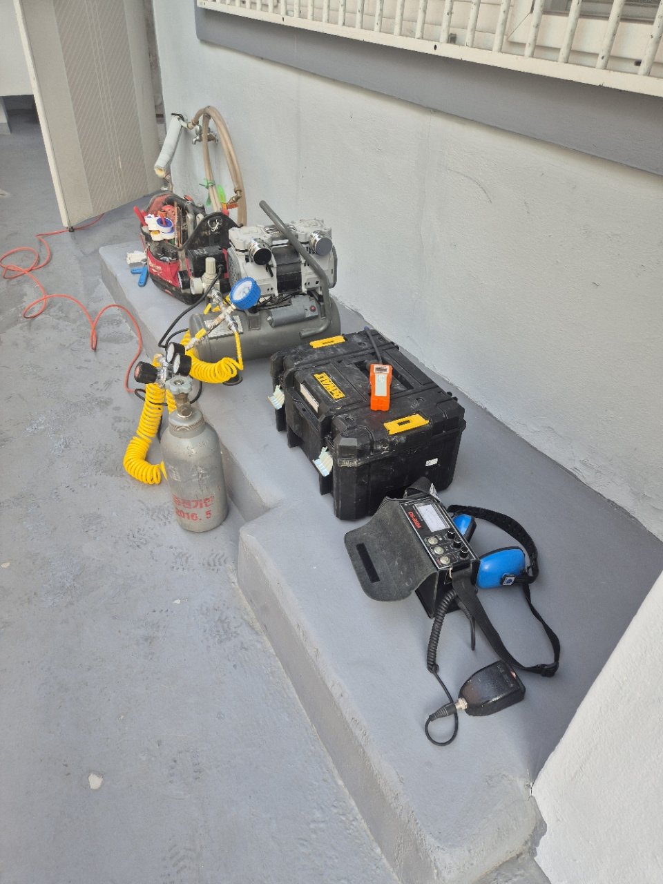 눈에 보이지 않는 바닥 속 누수를 찾아야 했던 현장이었기 때문에, 무작정 바닥을 뜯는 방식은 처음부터 배제했습니다. 대신 탐지용 가스를 배관에 주입해 반응을 확인하는 방식으로 누수 지점을 추적했습니다.