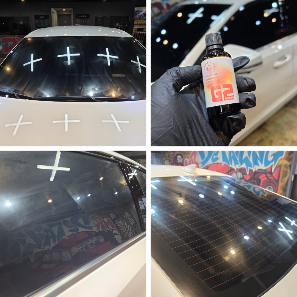 유막 제거와 표면 클리닝을 꼼꼼히 마친 뒤 일정한 패턴으로 도포해 반응 시간을 확보합니다. 비 오는 날 와이퍼 부담을 줄이고 시야 확보가 크게 좋아져 신차 고객님들이 특히 선호하십니다.