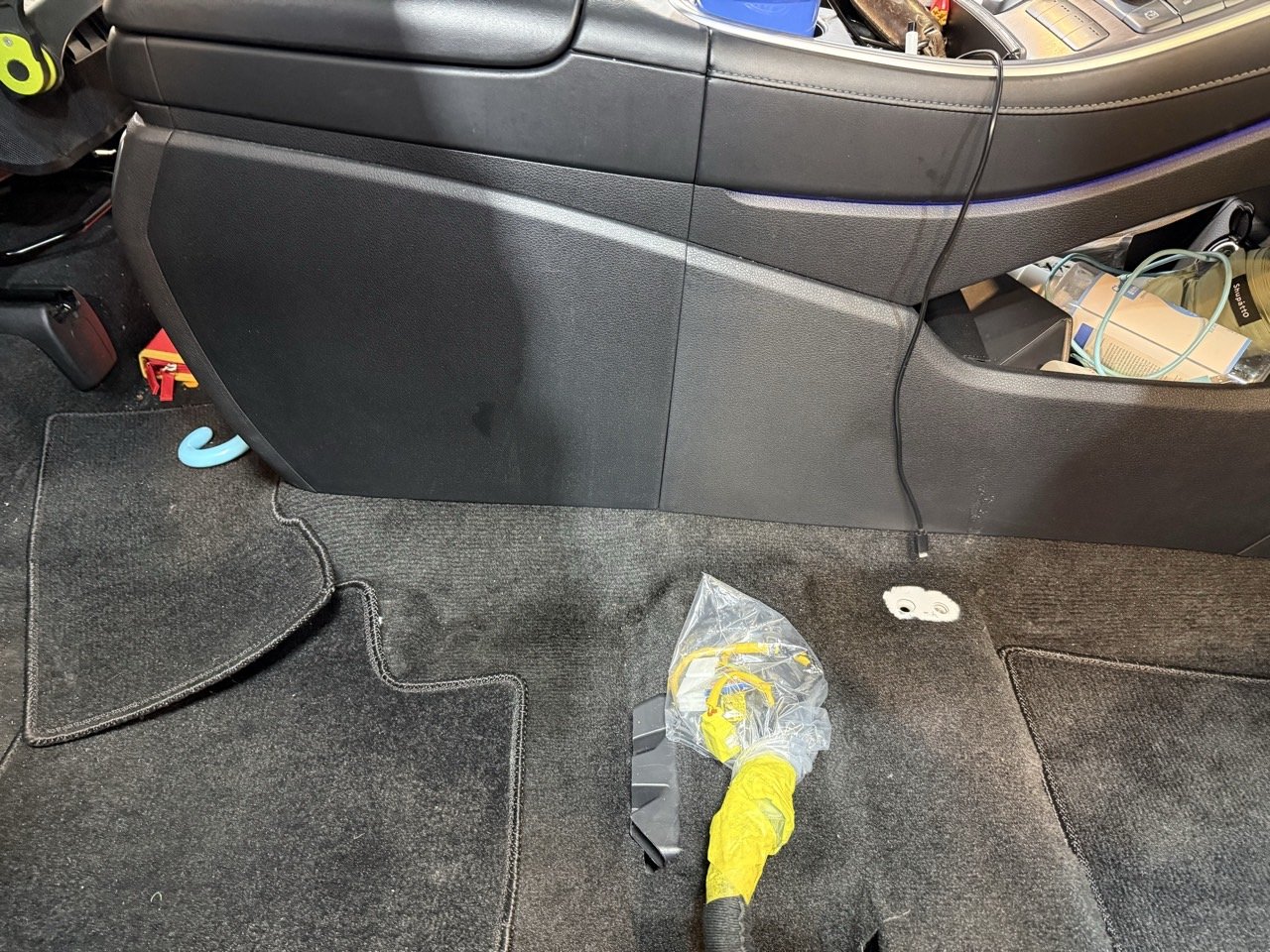 바닥 정리가 끝난 뒤에야 조수석 시트를 다시 장착하고, 에어백 관련 배선과 커넥터도 함께 점검하면서 조립을 마무리했습니다.