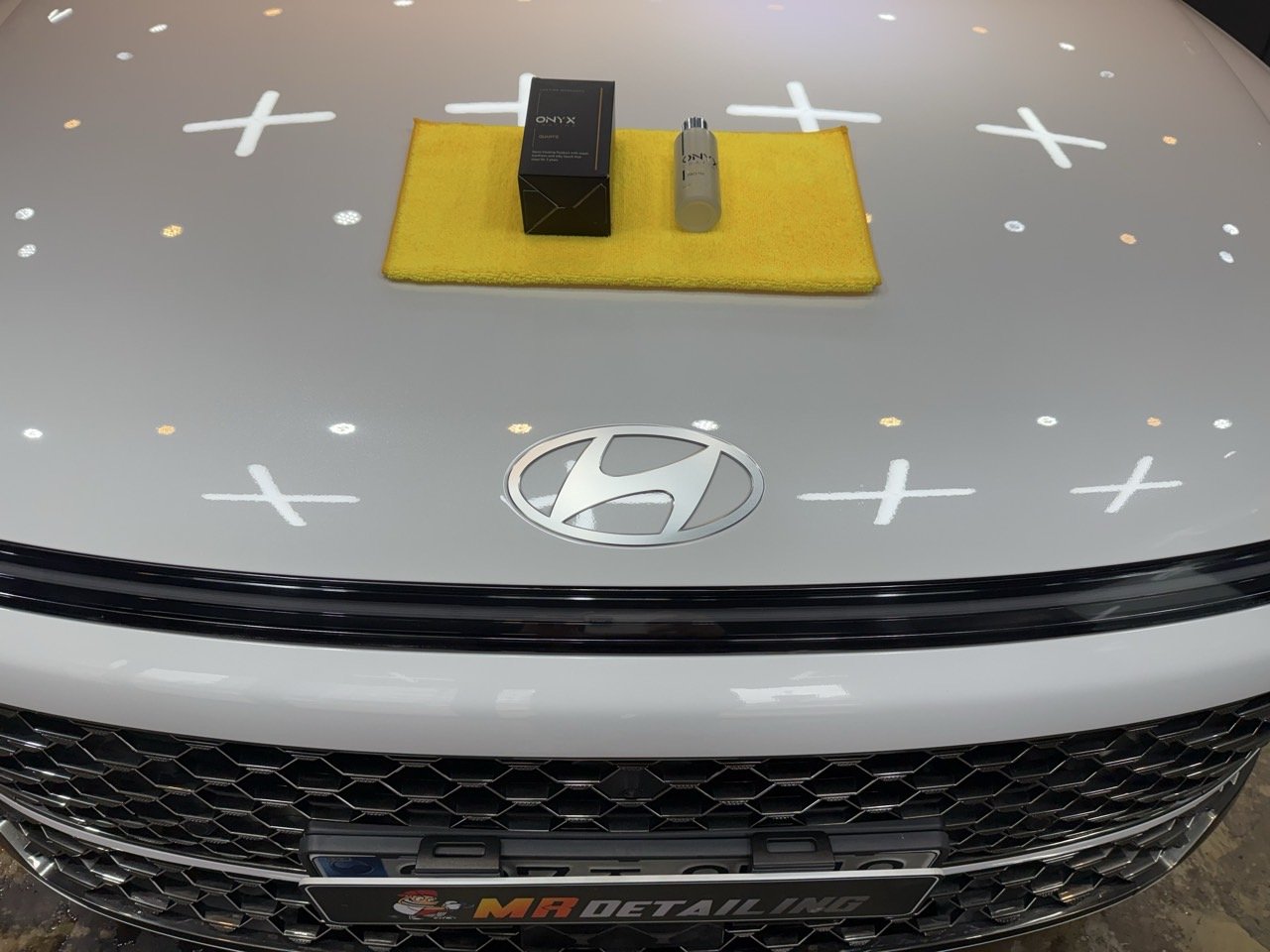 광택 작업을 통해 도장면을 최대한 깔끔하게 정리한 뒤, 그 위에 오닉스 쿼츠 유리막코팅을 시공했습니다. 유리막코팅은 단순히 반짝이게 만드는 역할을 넘어, 도장면을 외부 환경으로부터 보호해 주는 투명 방어막 역할을 하게 됩니다.