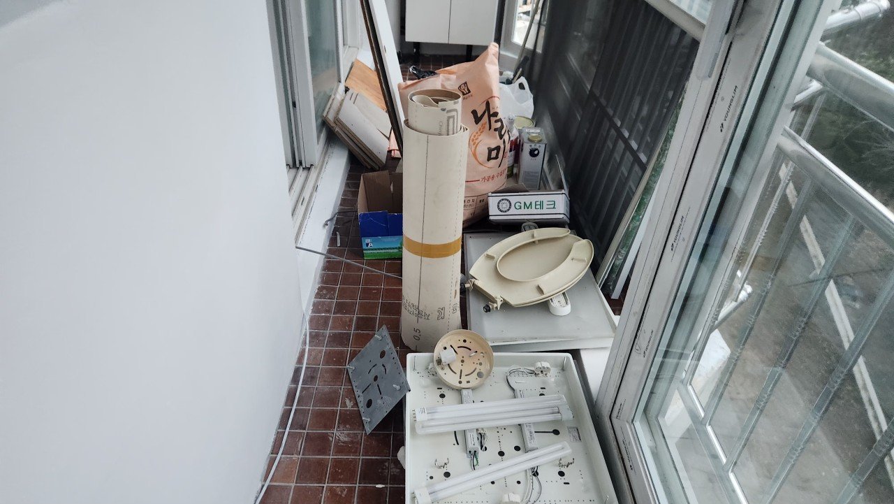 베란다는 인테리어 과정에서 자재 이동이 많고, 타일 바닥에 분진이 그대로 쌓여 있는 경우가 많아 꼭 체크해야 하는 공간입니다.
