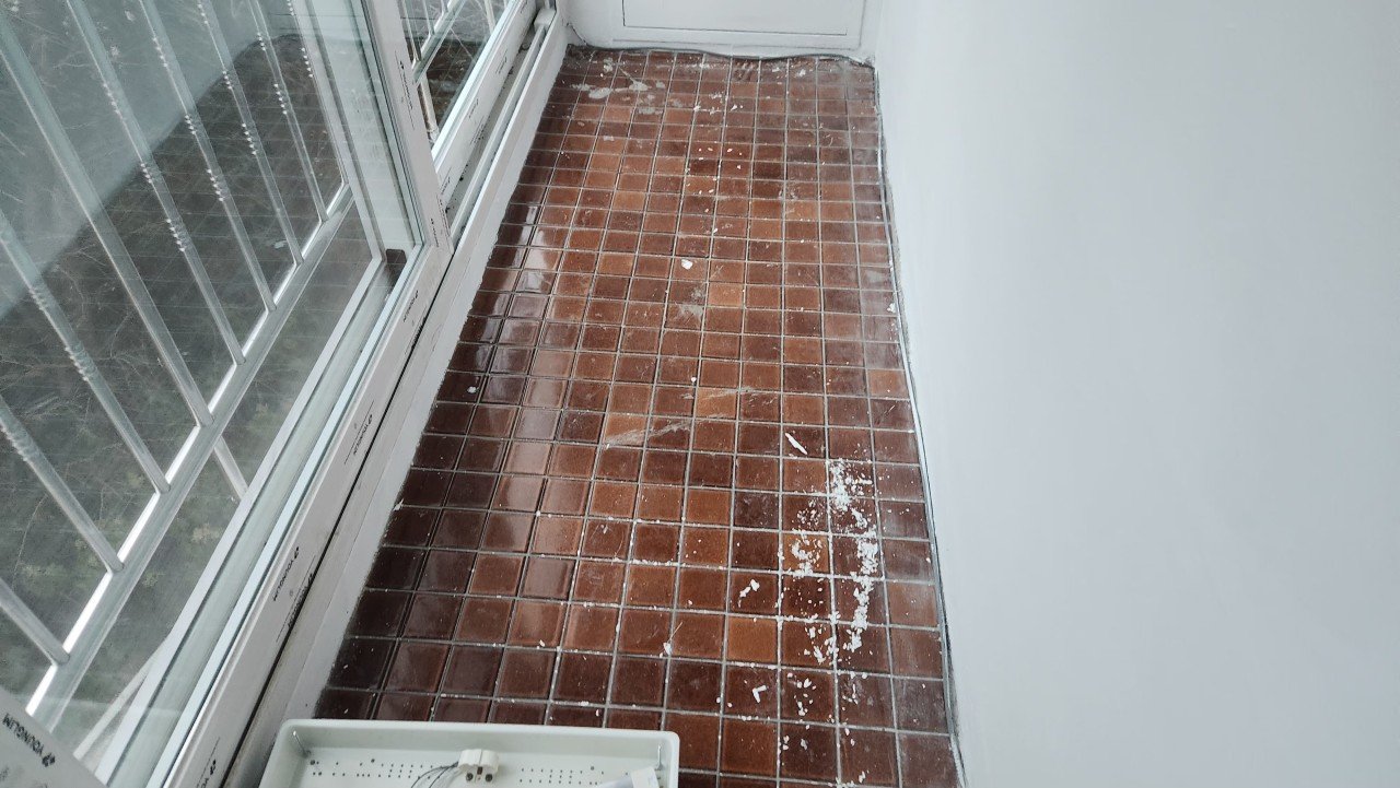 베란다 타일 바닥과 작업 자국 꼼꼼히 세정
