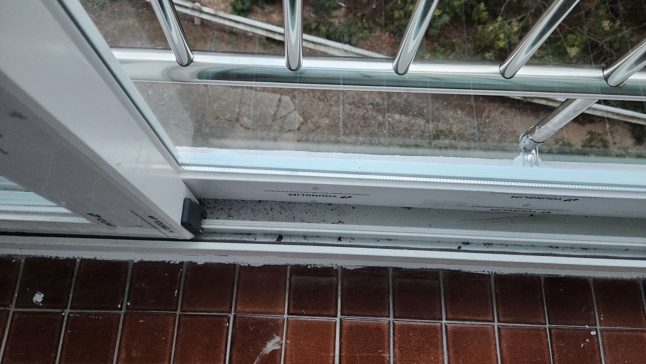 이번 현장에서도 창틀 홈과 레일 틈새마다 분진이 많이 쌓여 있어 가장 먼저 이 부분부터 집중적으로 정리했습니다.