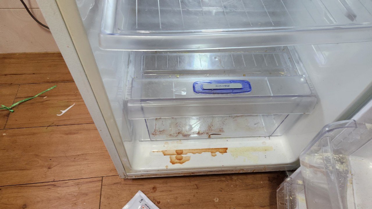 퇴거 청소에서 냉장고는 꼭 챙겨야 하는 부분입니다. 겉으로 보기에는 깨끗해 보여도, 서랍 아래나 바닥면을 들춰보면 음료수 자국과 음식물이 흘러 굳은 얼룩이 남아 있는 경우가 많습니다. 시간이 지나면 냄새의 원인이 되기도 합니다.