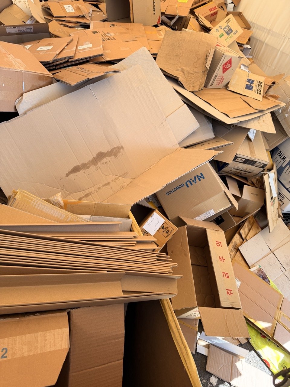 재활용이 가능한 박스는 별도로 모아 적재하고, 오염되거나 훼손이 심한 박스는 사업장폐기물로 묶어서 1톤 차량에 실었습니다. 수거를 마친 뒤에는 박스가 쌓여 있던 구역이 시원하게 비워지면서, 작업 동선이 훨씬 넓어졌다고 담당자분께서 특히 만족해 하셨습니다.