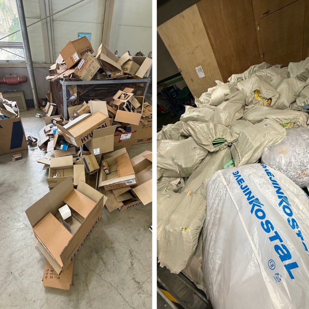 학교에서는 1학기 교재와 유인물, 분쇄된 문서가 주로 나왔고, 공장에서는 유통 포장 박스와 인쇄물, 불용 서류가 많았습니다. 마대에 담아두신 종이든, 구석에 쌓아둔 박스든 상관없이 저희 팀이 바로 찾아가 분류 후 상차까지 일괄 진행했습니다.