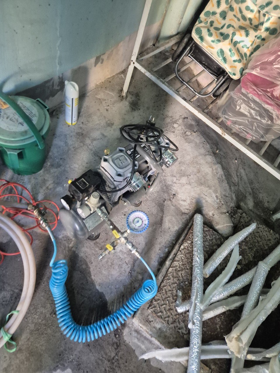 배관 구조를 정리한 뒤에는 공압 테스트를 진행했습니다. 공압 테스트는 말 그대로 배관에 압력을 가해 압력 변화를 확인하는 방식입니다. 눈에 보이지 않는 배관 내부의 누수 여부를 확인하는 데 효과적입니다.