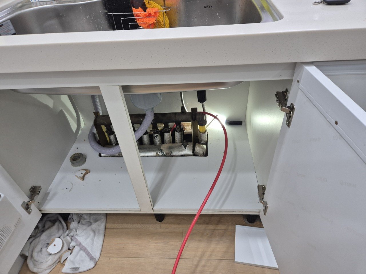 부산 우암동 일신보라아파트에서 싱크대 하수구 막힘으로 역류가 발생해 긴급 출동했습니다. 고객님은 최근 싱크대를 교체하고 식기세척기 설치를 앞둔 상황이었는데, 물이 역류하면서 설치를 진행할 수 없었던 상태였습니다. 저희 대건누수탐지공사가 원인 진단부터 복구까지 원스톱으로 처리했습니다.