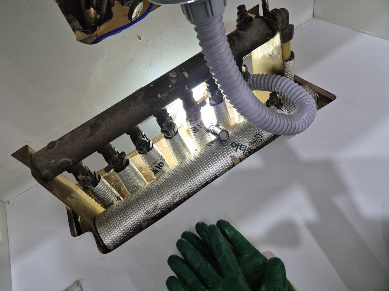 현장 점검 결과, 기존 배관 내부에 오래 쌓인 음식물 찌꺼기와 기름때가 배수 흐름을 크게 방해하고 있었습니다. 배수가 느려지며 압력이 역류로 이어진 상황이었죠. 아파트는 공용 배관과 샤프트 연결 구조가 복잡해 단순 겉보기 점검으로는 원인 파악이 어렵습니다. 저희는 라인별 흐름을 확인해 막힘 구간을 특정했습니다.