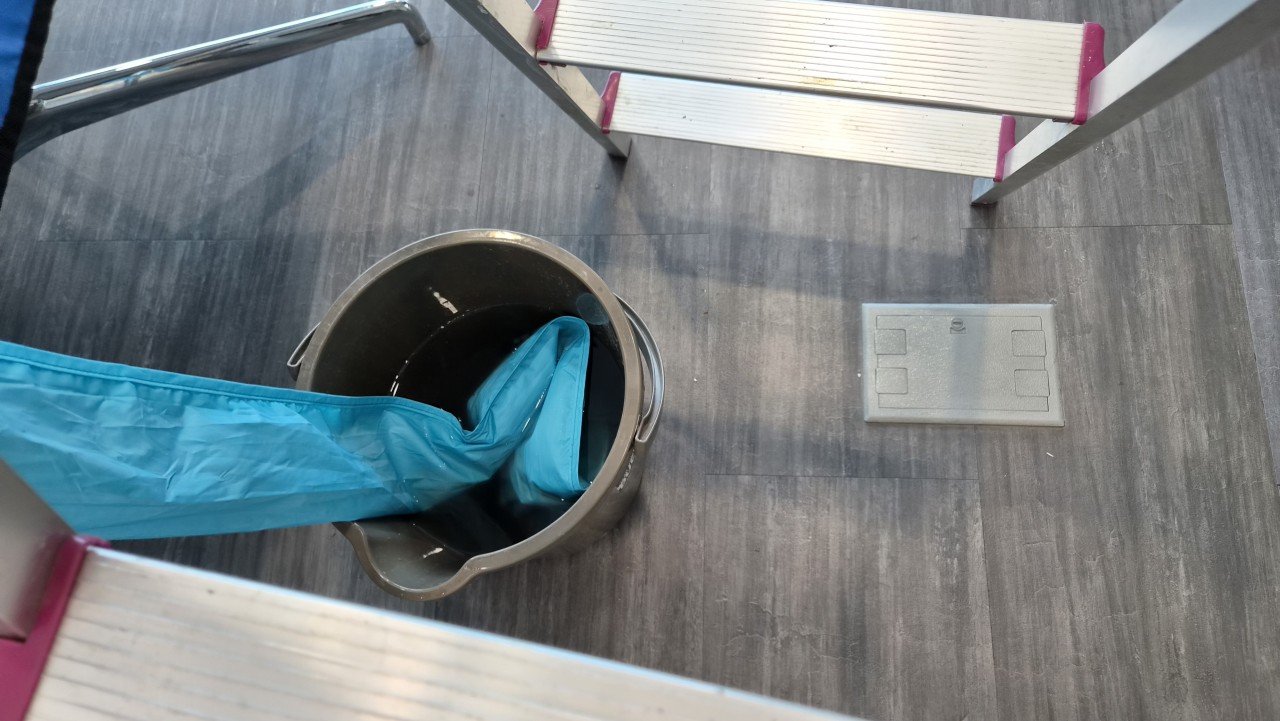 작업이 진행될수록 떨어져 나오는 오염수를 통해, 평소 얼마나 많은 먼지가 내부에 쌓여 있었는지 확인할 수 있었습니다. 이런 부분은 눈에 잘 보이지 않기 때문에, 실제 분해청소를 해보면 사용자분들이 놀라워하시는 경우가 많습니다.