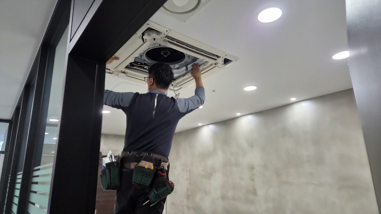 사무실 천장형 냉난방기는 상시 가동되는 장비인 만큼 공기와 직접 맞닿아 있습니다. 그런데 대부분은 외부 필터 정도만 간단히 청소하거나 눈에 보이는 부분만 닦고 넘어가는 경우가 많습니다.