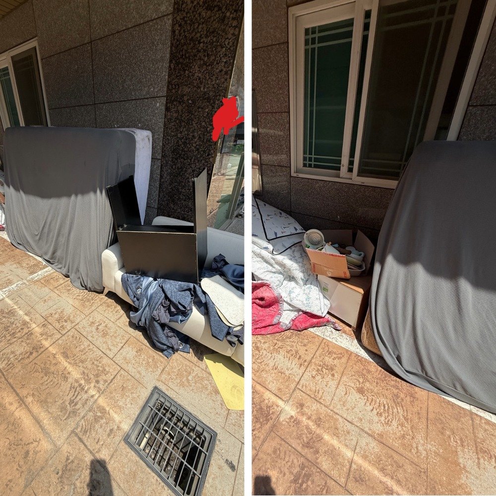 원룸 이사철에 흔히 나오는 혼합 폐기물(일반쓰레기, 매트리스, 소파, 소형 가구류)이 한꺼번에 모인 상황이었고, 고객님이 미리 주차장으로 옮겨 주셔서 작업이 한층 빨라졌습니다. 저희는 짐 적재부터 마무리 청소까지 깔끔하게 정리해 드렸어요.