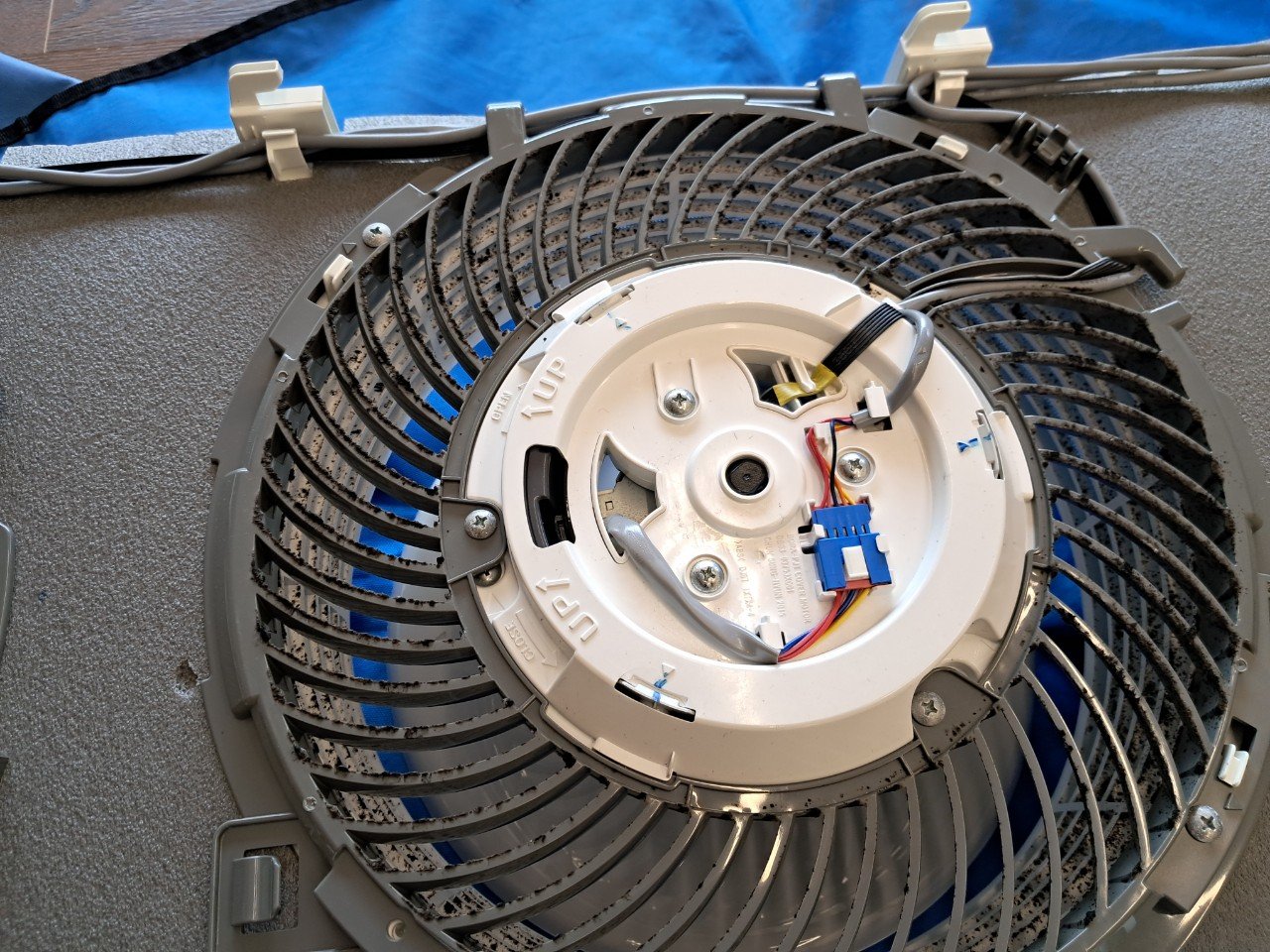 분해를 시작하면서 가장 먼저 느껴지는 부분은 겉으로는 절대 보이지 않는 먼지의 양입니다. 팬 주변, 내부 커버, 공기가 지나가는 통로 쪽을 하나씩 열어보니 생활 먼지와 오염이 생각보다 많이 쌓여 있었습니다.
