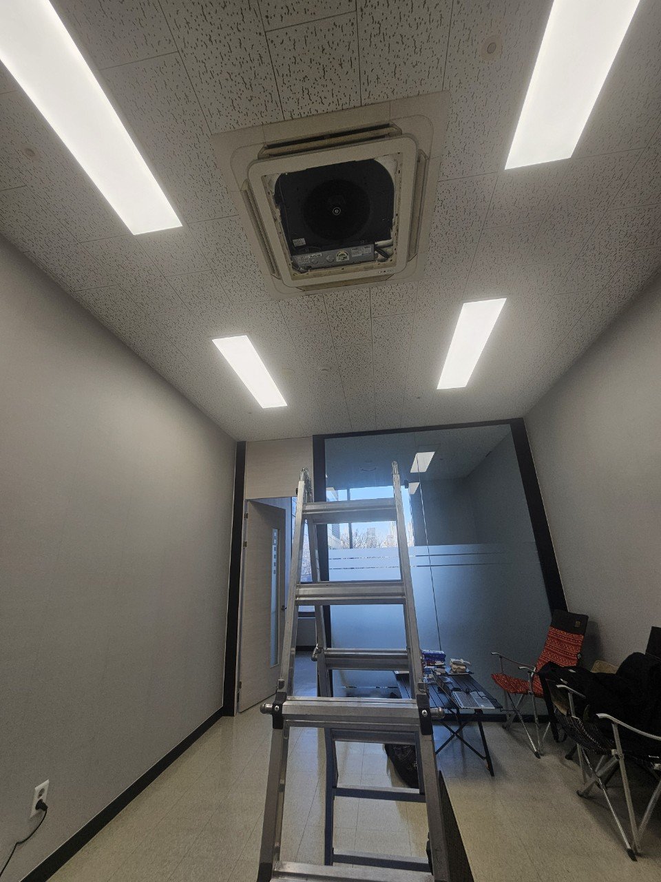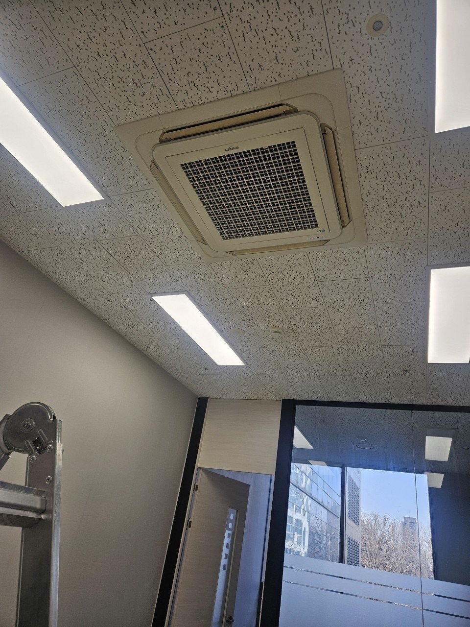 이번 현장에서도 시운전 결과, 바람이 이전보다 훨씬 또렷하게 느껴졌고, 실내 공기도 훨씬 산뜻해진 느낌이 확실히 있었습니다. 새로 오픈을 준비 중인 사무실이라 전체 분위기와도 잘 맞는 깔끔한 마무리였어요.