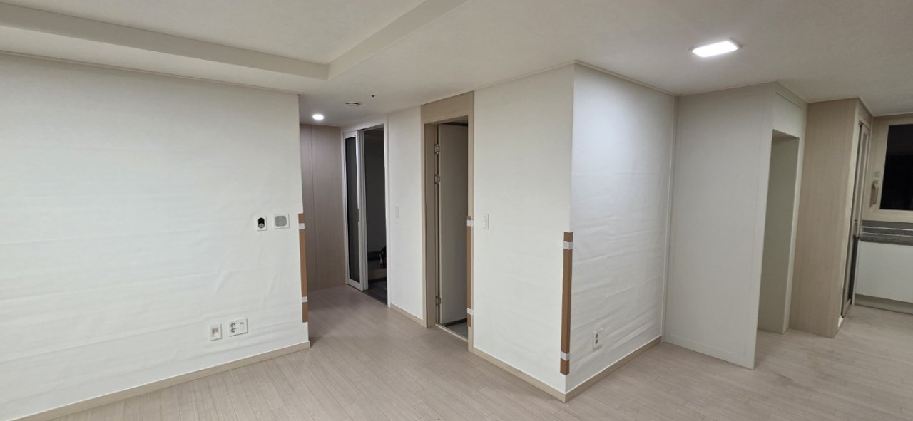 전체 도배 공사가 마무리된 후 집 안을 다시 둘러보니, 이전보다 훨씬 밝아진 느낌이 눈에 들어왔습니다. 특히 거실은 벽면이 정리되면서 조명빛이 보다 균일하게 퍼져, 실제 면적은 그대로인데 시각적으로 넓어진 느낌이 살아났습니다.