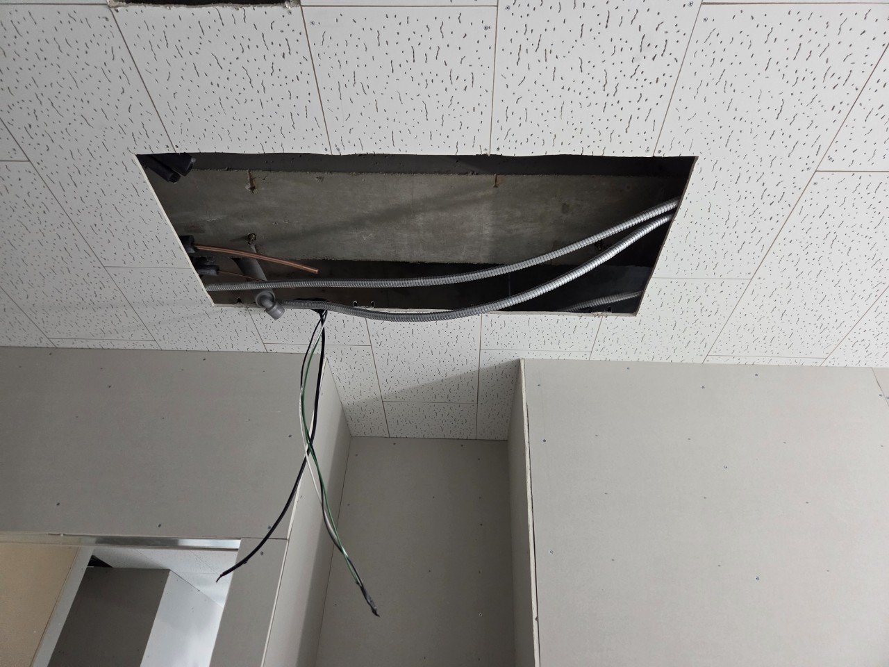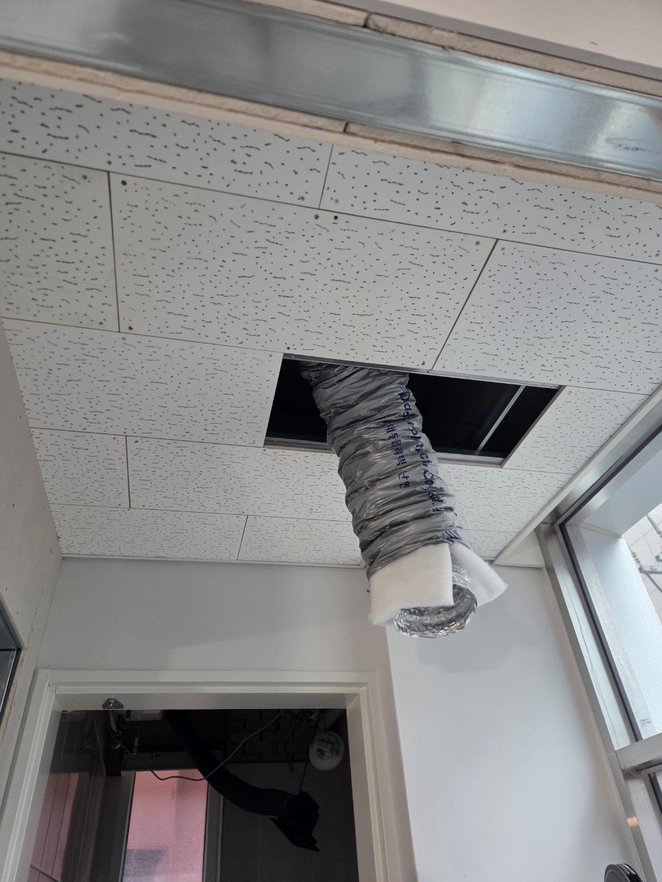 이번 현장은 천장 석고 마감 공정이 아직 남아 있는 상태에서 냉난방기 설치가 먼저 진행되어야 했습니다. 이런 경우에는 완전히 끝까지 다 설치해 두기보다는, 이후 마감 공정에 지장이 없도록 단계별로 분리해서 진행하는 것이 안전합니다.
