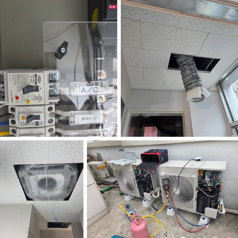 이번 현장은 상가 공간이면서 외국인 대상 숙박시설로 함께 운영되고 있는 곳이었습니다. 이용객이 층별로 나뉘어 사용하기 때문에, 어느 한 곳만 과하게 춥거나 덥지 않도록 냉난방을 잘 분산시키는 것이 중요한 현장이었습니다.