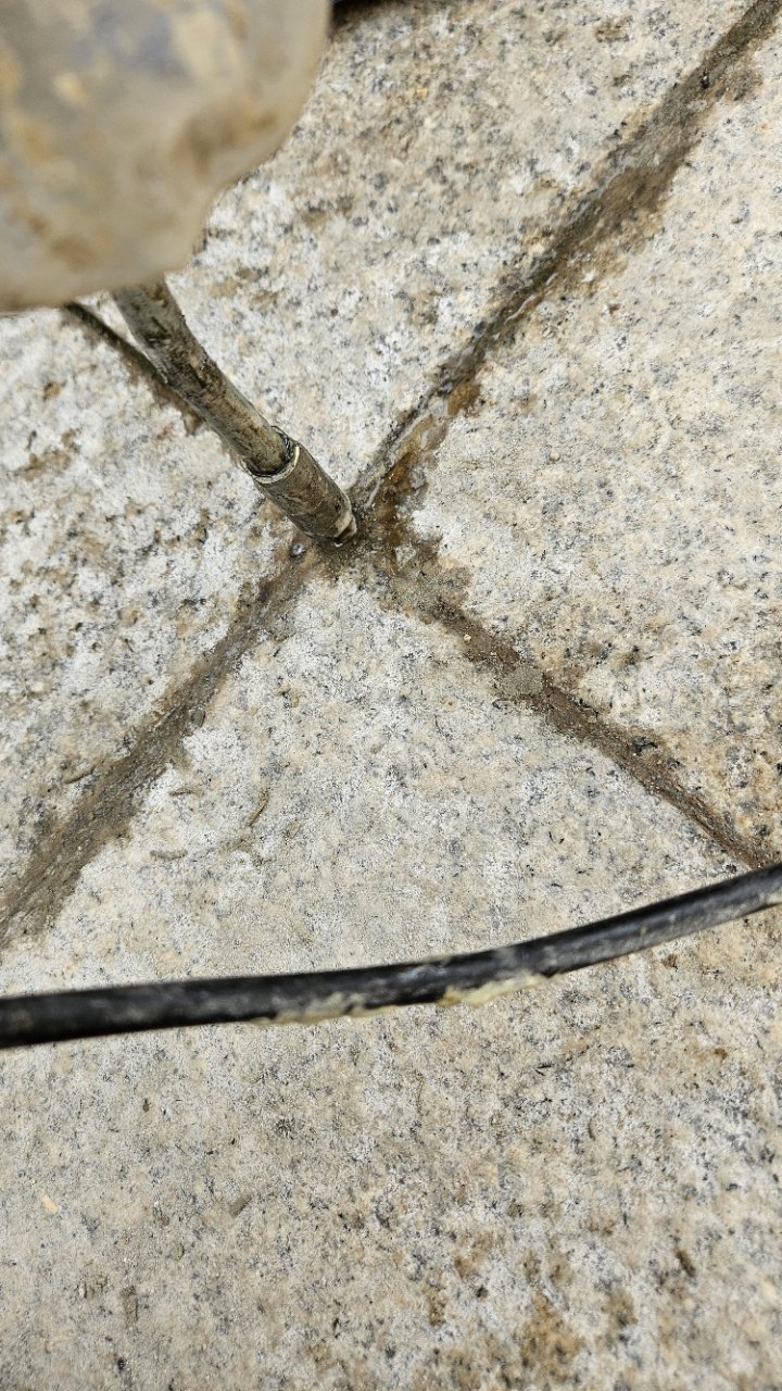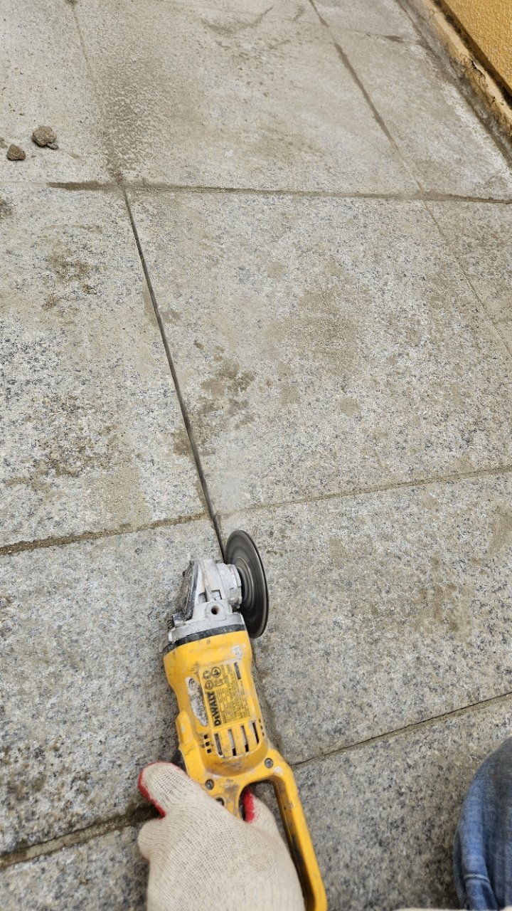 대리석 바닥의 줄눈을 따라 인젝션 장비를 연결하고, 사전에 설정한 포인트 순서에 맞춰 천천히 재료를 주입했습니다.