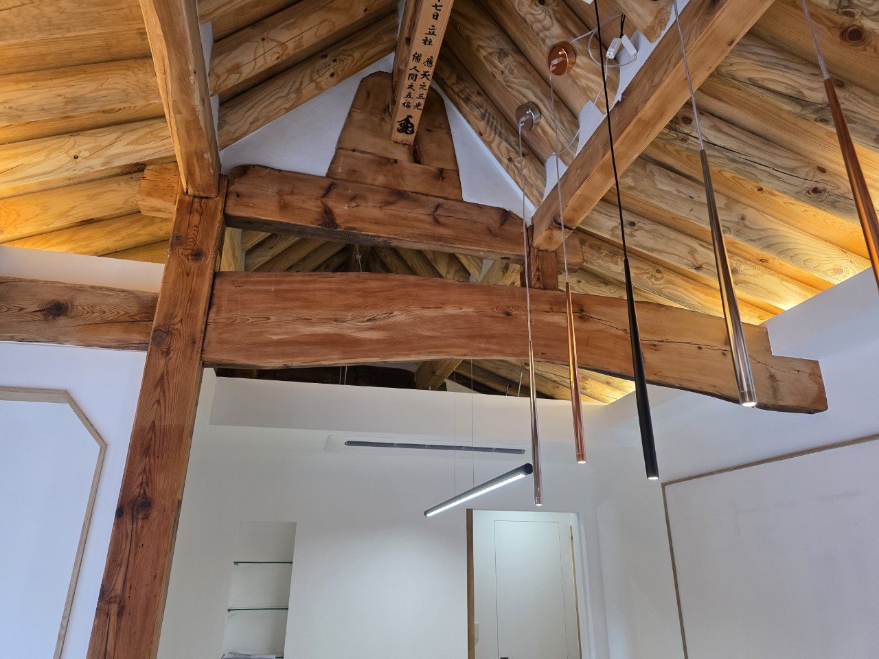 - 구조 보존 우선 설계: 목재 보와 처마선, 기둥을 손상 없이 살리기 위해 배관 동선을 여러 차례 시뮬레이션했습니다. 노출이 불가피한 구간은 시선이 덜 가는 라인으로 우회 설계했어요.