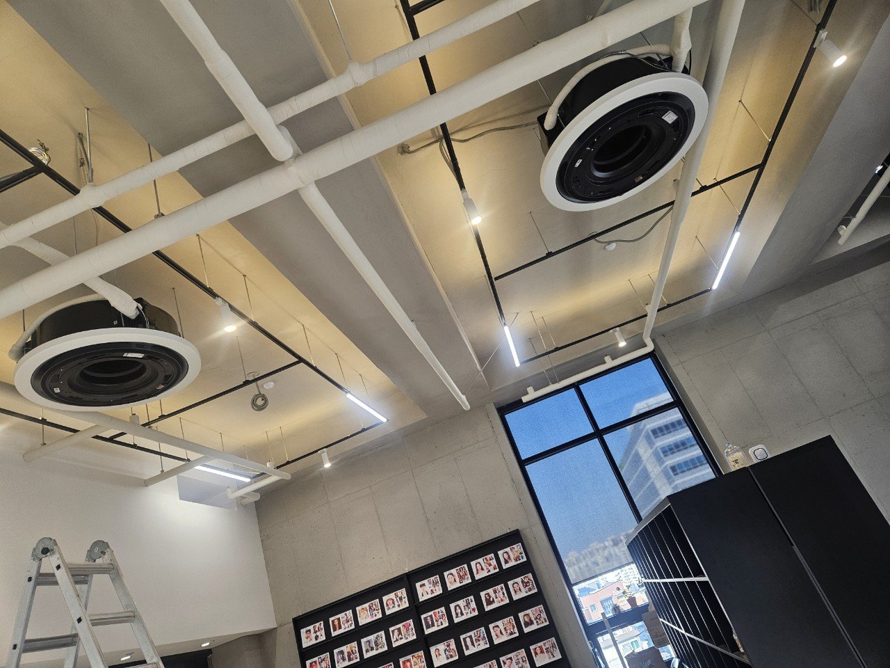 서울 성수동과 왕십리 사이에 위치한 한 모델회사에서 에어컨 청소 의뢰를 주셨습니다. 층고가 약 4.5m로 상당히 높은 공간이었고, 천장에는 원형 천장형 에어컨이 설치되어 있었습니다. 촬영과 업무가 수시로 이뤄지는 특성상, 작업 동선과 안전 확보가 무엇보다 중요했던 현장이었습니다.