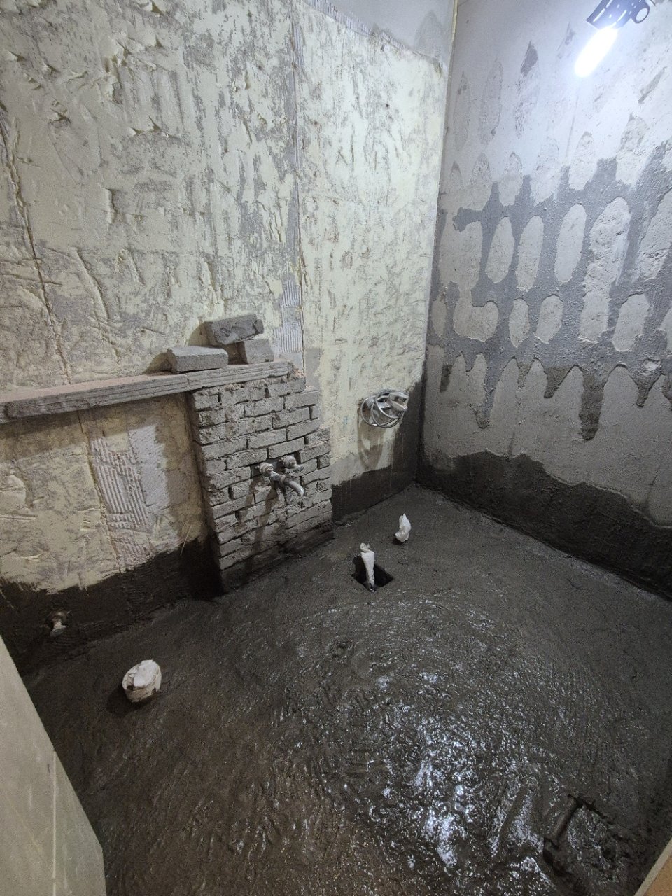 이번 세종시 현장에서는 기존 마감재를 모두 철거한 뒤 바탕부터 다시 확인했습니다. 바닥과 벽체 상태를 점검한 후, 1차로 시멘트 액체방수를 진행해 기본 바탕을 잡고, 이어서 2차와 3차 도막방수까지 차례대로 마무리했습니다.