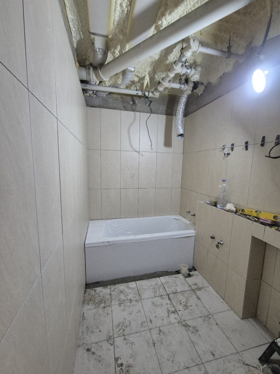 욕조를 걷어내고 나면 눈에 잘 보이지 않던 부분들이 드러나기 때문에, 주변 타일 마감 상태와 높이, 연결 부위를 다시 한 번 꼼꼼히 확인해야 합니다. 욕조는 단순히 반듯하게 보이게만 설치한다고 끝나는 것이 아니라, 주변 타일 마감과 단차, 수전의 위치, 배수 방향까지 모두 균형 있게 맞아야 실제로 사용할 때 만족도가 높습니다.