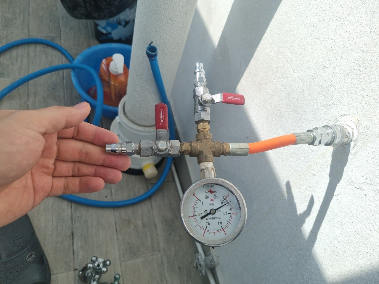 설치가 끝난 뒤에는 실제 사용 환경과 최대한 비슷한 상태에서 가압 테스트를 진행했습니다. 압력 게이지를 연결해 펌프가 작동할 때 압력이 정상적으로 형성되는지 먼저 확인했습니다.