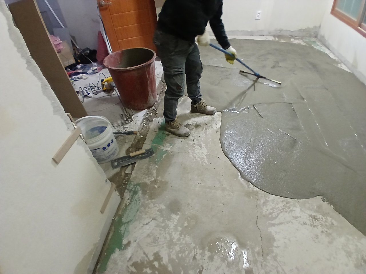 고르지 않은 바닥, 몰탈로 수평·평탄화 작업