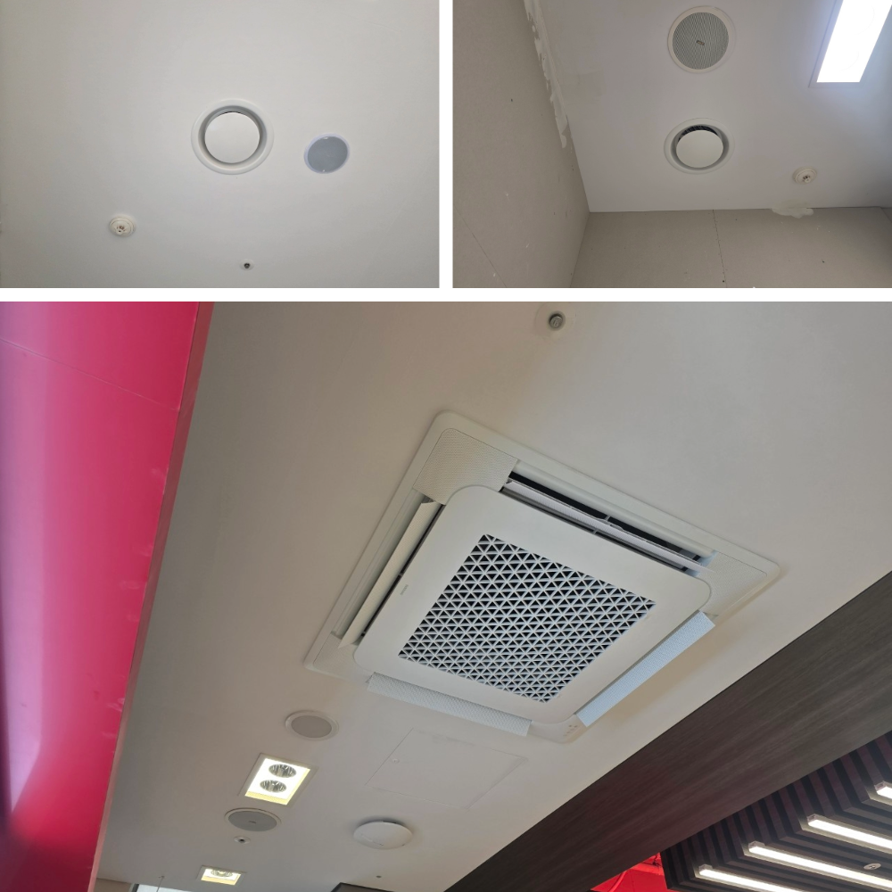 준공 후 전 구간 가동 테스트를 진행했습니다. 모든 실내기에서 바람 세기와 온도 반응이 고르게 확인됐고, 실외기 소음 역시 안정적인 범위로 측정됐습니다. 원장님께서 “생각보다 조용하고 바람 분포가 좋다”는 말씀을 주셨고, 기존 자재 일부 재사용에 따른 경미한 성능 차이는 사전에 충분히 안내드려 이해를 도왔습니다.