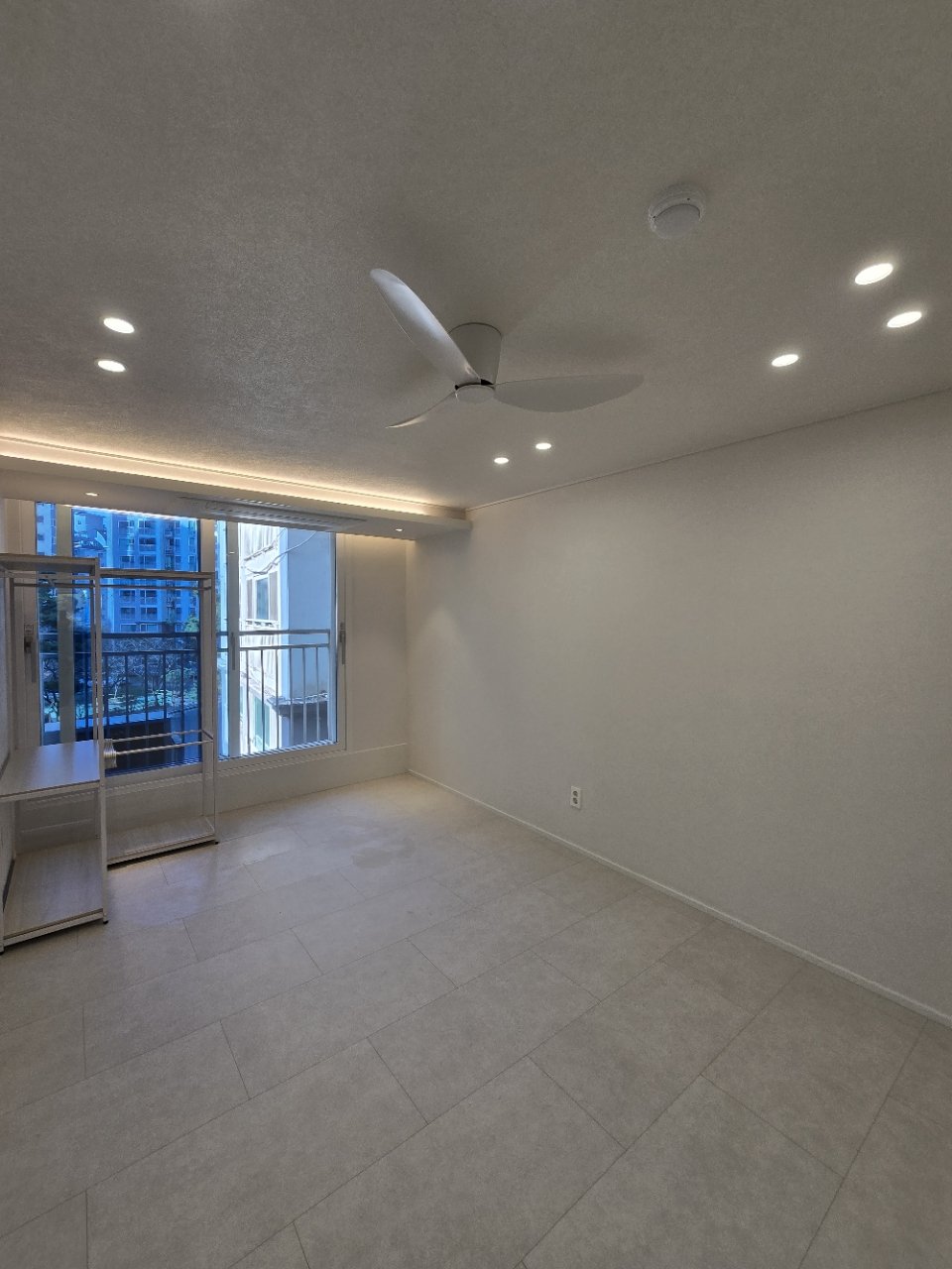 거실 중앙에는 실링팬을 설치했습니다. 단순한 인테리어 포인트를 넘어, 계절에 상관없이 공기를 순환시켜 냉난방 효율을 높이는 실용적인 요소입니다. 여름에는 선풍기처럼 시원함을 더해주고, 겨울에는 위쪽의 따뜻한 공기를 아래로 내려주어 체감 온도를 부드럽게 조정해 줍니다.