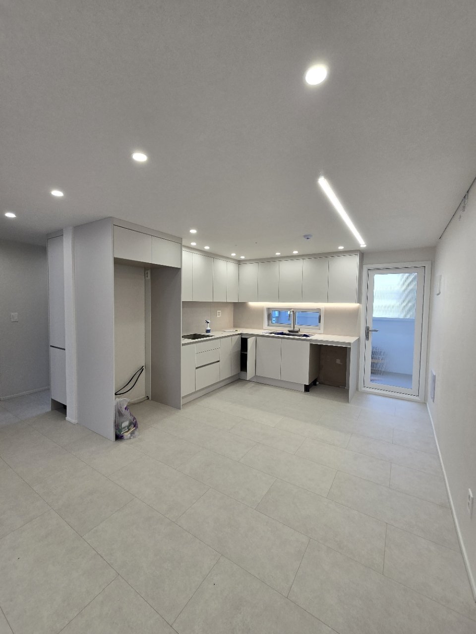 이번 32평형 아파트 리모델링에서는 전체 인테리어와 조화를 이루는 화이트 톤의 미니멀 주방을 계획했습니다. 상부장과 하부장의 라인을 최대한 단정하게 정리해 시각적인 답답함을 줄이고, 가구와 벽선이 깔끔하게 이어지도록 했습니다.