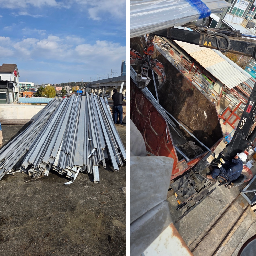 이렇게 상차까지 마무리한 뒤 주변에 남은 작은 알루미늄 조각과 잡자재도 함께 정리해, 옥상 바닥을 한 번 더 점검하고 현장을 마무리했습니다.