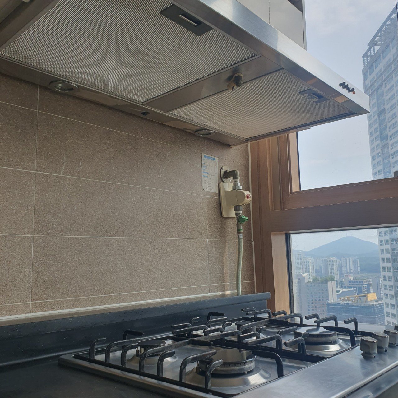 - 주방 후드와 상부장 주변 기름때+먼지 복합 오염