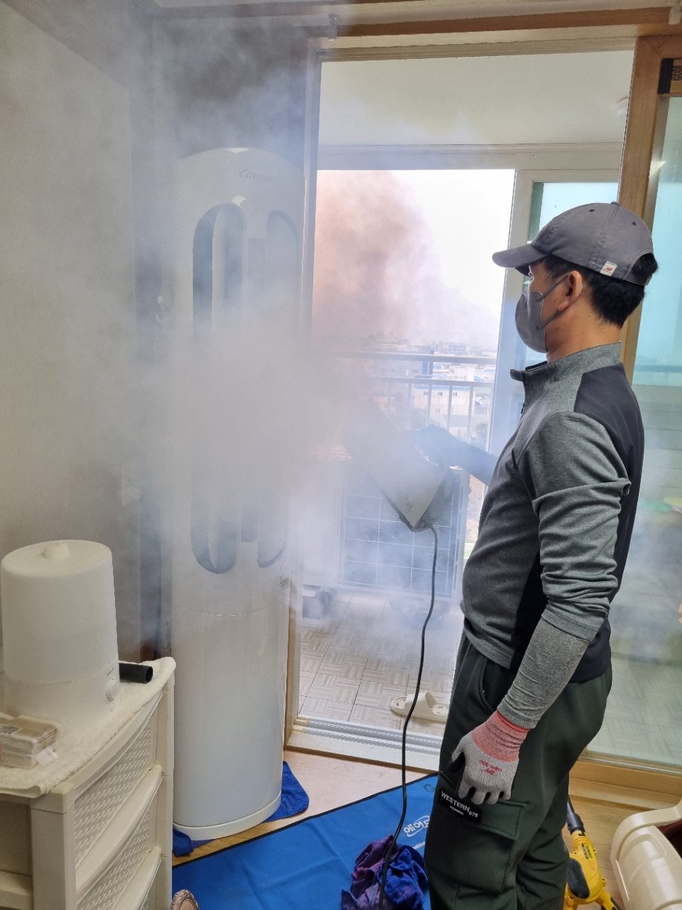 이어서 연무기를 활용한 연무 서비스를 진행해 내부 공간 전체가 고르게 케어될 수 있도록 마무리했습니다. 눈에 보이는 오염을 제거한 뒤 살균과 냄새 케어까지 더해주면, 실제로 사용하실 때 바람이 훨씬 산뜻하게 느껴졌다는 말씀을 많이 주십니다.
